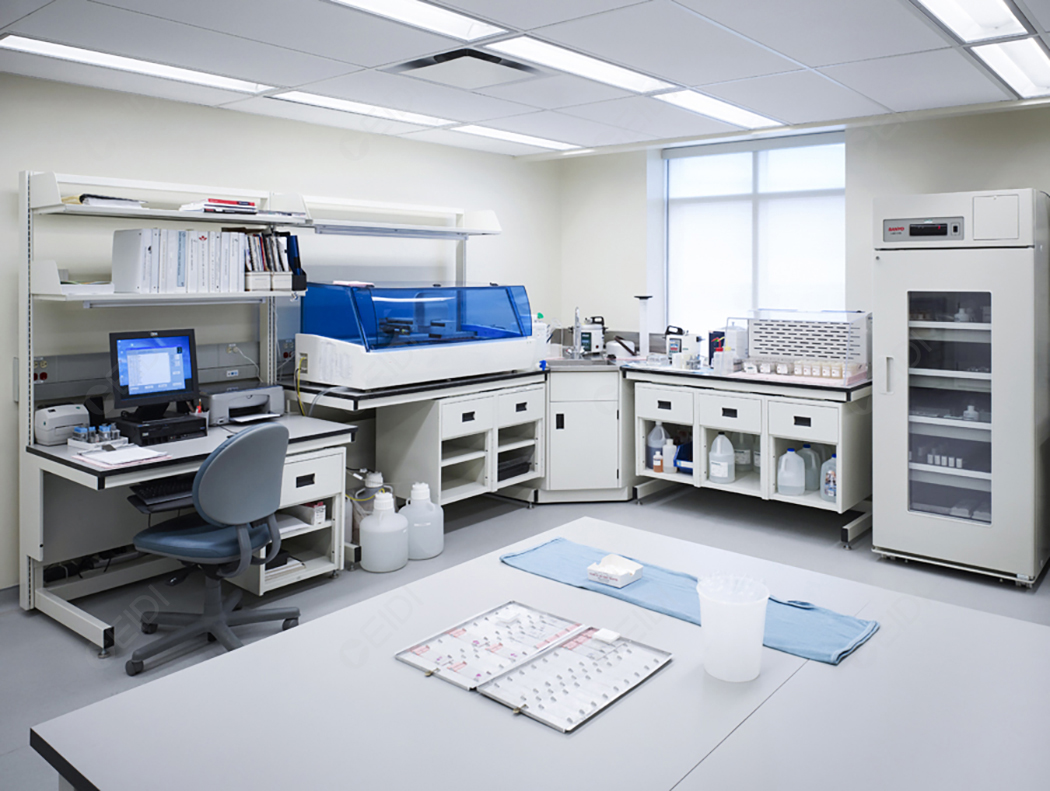 2)實驗臺及輔助材料選擇具有優良的物理、化學、生物性能,耐腐蝕,易清洗的材料,面板設置,電纜線槽布置、插座配置等。 CEIDI建議依據實驗內容安裝適當的防靜電工作臺面、防靜電地板、接地設施以及其他防靜電設施。